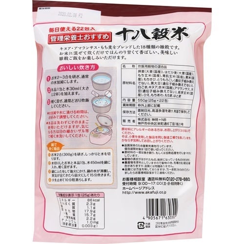 管理栄養士おすすめ 十八穀米 550g(25g×22包)