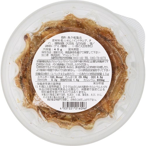 いわし(インドネシア、タイ)、植物油脂(大豆油、なたね油)、塩/調味料(アミノ酸等)、(一部に大豆を含む)