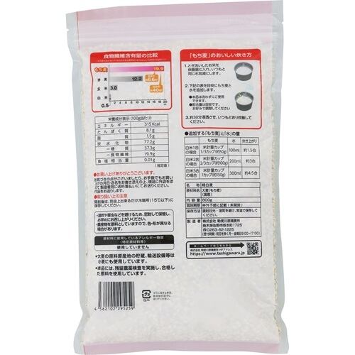 エネルギー 315kcal、たんぱく質 8.1g、脂質 1.5g、炭水化物 77.2g(-糖質 57.3g、-食物繊維 19.9g)、食塩相当量 0.01g